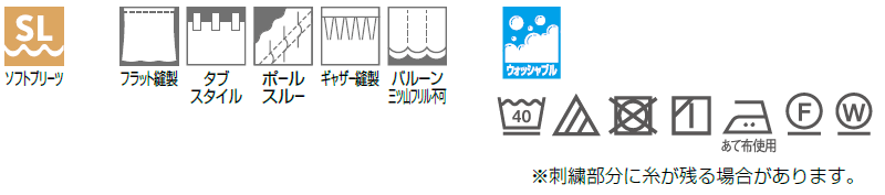 SL ソフトプリーツ加工[形態安定加工]カーテンの裾の広がりを抑える加工を施した縫製仕様です。