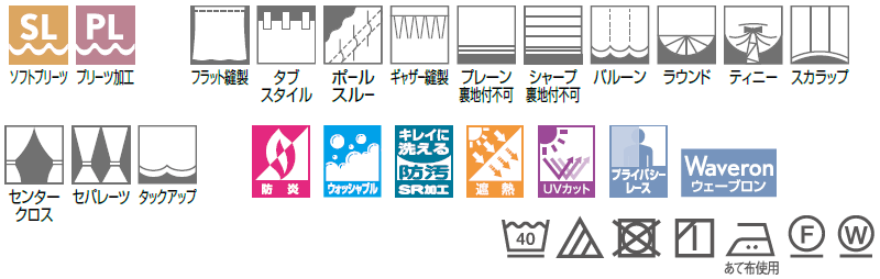 SL ソフトプリーツ加工[形態安定加工]カーテンの裾の広がりを抑える加工を施した縫製仕様です。