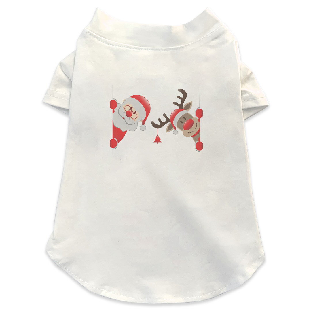 犬専用Tシャツ 選べる5size 小型犬 袖あり 半袖 ホワイト デザイン T shirt XS S M L XL ペットウェア ペット服 カジュアル おしゃれ コットン 綿 クリスマス サンタ トナカイ クリスマス 017828