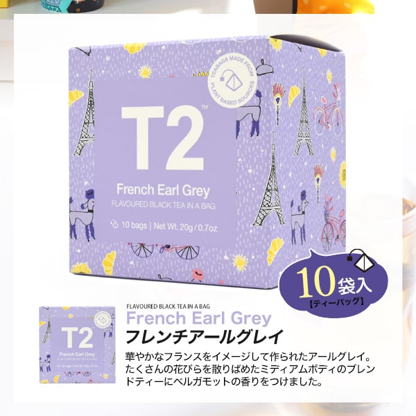 【T2 フレンチアールグレイ 10袋】(ティーツー)ベルガモット紅茶 ティーバッグ かわいい クリスマス 変り種 ギフト 女子 ブレイクタイム 内祝い tea 食後 接待 新築 結婚 誕生日 おしゃれ 女子 おうち ママ 母 父 休憩 食事 食後 ティーパック お茶 秋冬【送料無料】