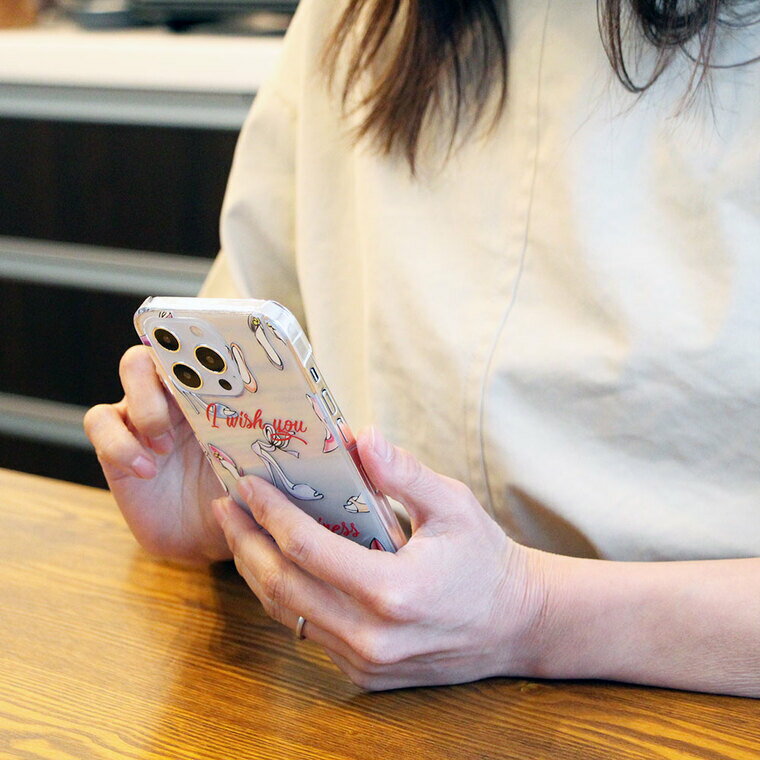 本体カラーを生かせるクリアベースのケースで、プラスチックのケース表面に特殊印刷を施しています。