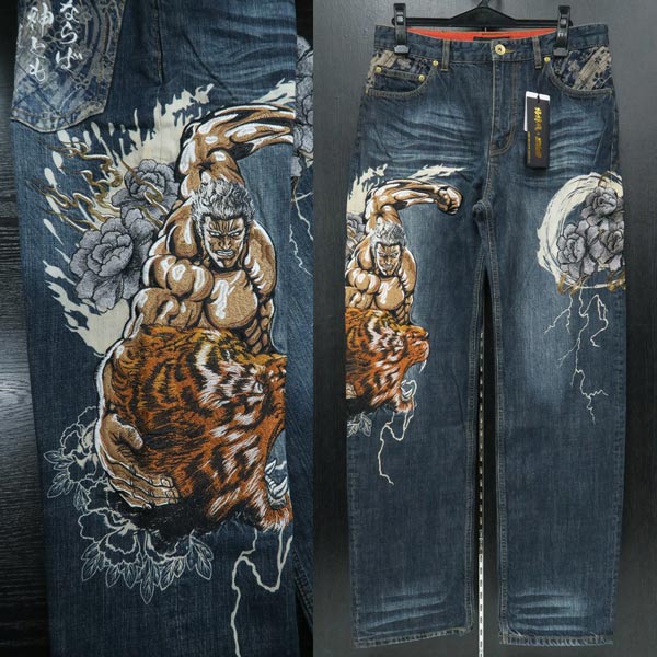 絡繰魂 北斗の拳 ラオウVS猛虎刺繍 ジーンズ 79-100cm カラクリタマシイ 292215-40
