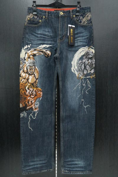 デニムパンツ 大きいサイズ メンズ ジーンズ ラオウ 虎 刺繍 北斗の拳 和柄 C010528-04