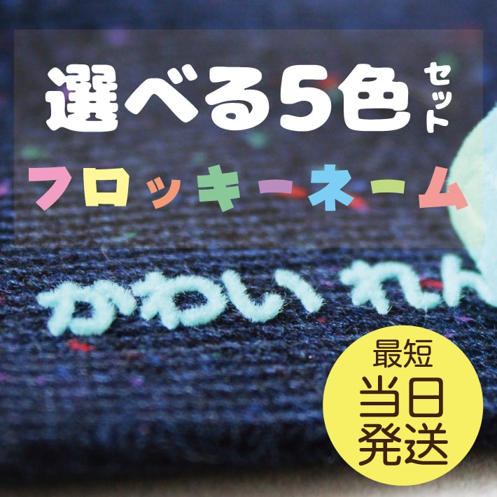 めちゃデカ!フロッキー 5片 送料無料 選べるカラー 5色 お名前フロッキー 名入れ お名前シール 布用 洋服 洗濯 プレゼント アイロン シール 転写 靴下 子供 名前 入園 幼稚園 保育園 老人ホーム 介護施設 ハンドメイド 【楽ギフ_名入れ】only @
