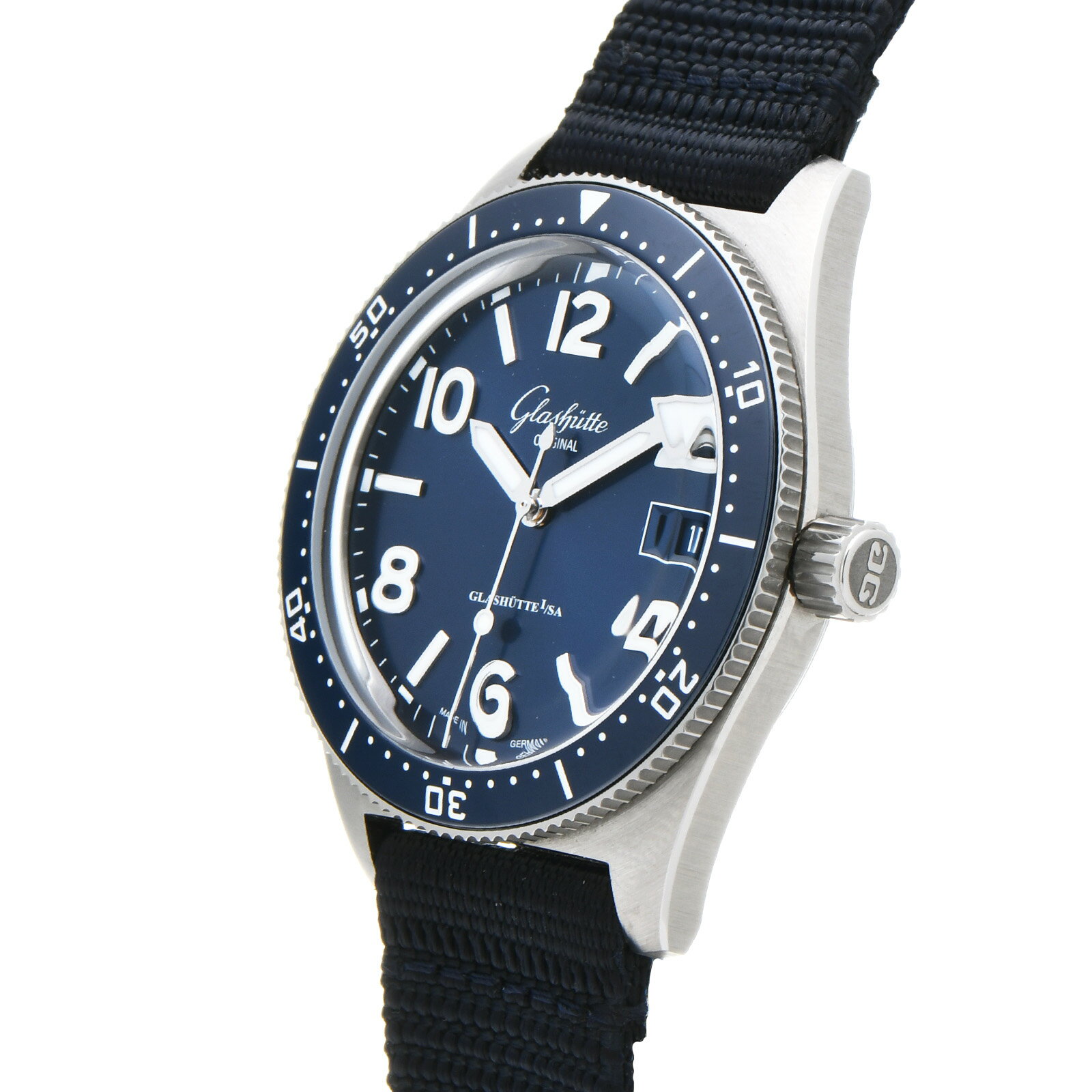 商品詳細 【管理番号】439253 【ジャンル】腕時計 /メンズ 【ブランド】グラスヒュッテ オリジナル / GLASHUTTE ORIGINAL 【商品名】 シーQ 1-39-11-09-81-08 ガルバニックブルー 【ムーブメント】自動巻き / Cal.39-11 【文字盤】ガルバニックブルー 【ケース】ステンレス 【風防】サファイアクリスタル風防 【ベゼル】ステンレス/ブルーセラミック 【ベルト】ナイロン / ブルー 【状態】 中古 ランクA ケース 僅かな打ち傷が見受けられます ベゼル 目立つダメージはございません ベルト 目立つダメージはございません バックル 目立つダメージはございません 風防 目立つダメージはございません 【サイズ】 ケース 縦/約39.5mm 横/約39.5mmリューズ含む幅/約43mm 厚み/約12.15mm ラグ幅 20mm 腕周り 約19.5cm 【機能】 防水(200m) デイト表示 逆回転防止ベゼル 【付属品】メーカー保証書(2021年5月海外購入) メーカー箱 冊子 【コメント】 パワーリザーブ約40時間 【当社保証】 1年 ランク状態について 商品の状態は、下記のランクで評価しています。